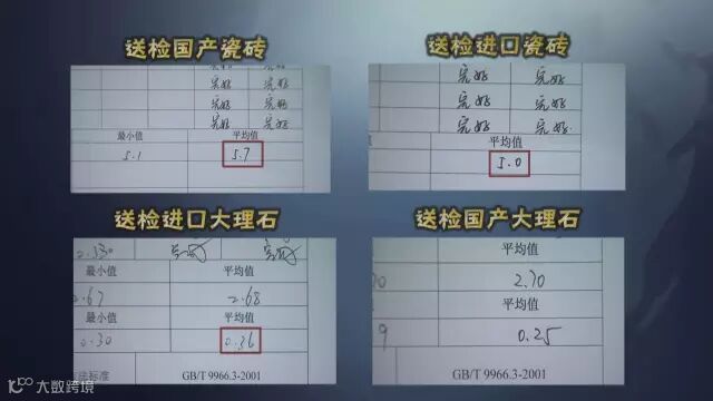 检测结果显示,在防水性能上,送检的进口瓷砖优于国产瓷砖,而送检的国产大理石的防水性要强于进口大理石。