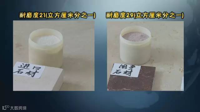 经检测:送检的国产大理石耐磨度低于送检进口大理石。