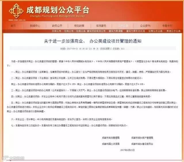 昨日(4月21日)下午,成都市规划管理局、成都市城乡房产管理局、成都市国土资源局、成都市城乡建设委员会联合发布《关于进一步加强商业、办公类建设项目管理的通知》的正式文件,对商业、办公类建设项目加强管理。归纳起来,新规主要有以下几点变化: