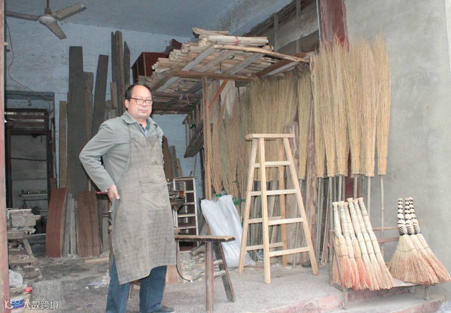 向阳桥头附近的做扫把的老师傅,全是用手工做出来的,厉害吧!