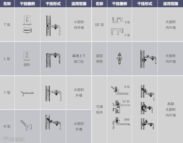 作为石材幕墙的金属配件——石材干挂件,虽是一个墙体与石板间不外露的辅件,但它以四两拨千斤的坚固和韧性为美化建筑装饰起到了至关重要的作用。干挂件的种类较多,而每一种挂件都有其安装方法。干挂方法直接关系着幕墙的结构、安装、综合成本及美观。自二十世纪八十年代中期从国外传人后,石材幕墙的干挂方法日益创新,从针销式、蝴蝶式等演变为至今的背挂、缝挂式。干挂技术的发展和进步,已完全脱离了国外技术的垄断,并且有了国内自行研发的干挂专利技术,为国内干挂幕墙装饰的改革和规范起到了积极作用。