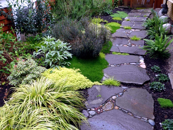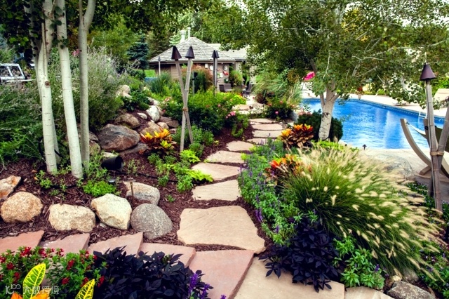 在园林设计中,路径、走道、楼梯等可以使用各种各样的天然石材,这一切取决你的风格和预算。如果你要求美观,可以选择砂岩创造马赛克的美感。如果你不想花费太多的钱,可以在花园路径铺一些鹅卵石或碎石等,同样显得时尚。