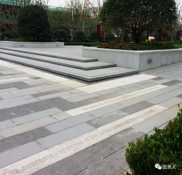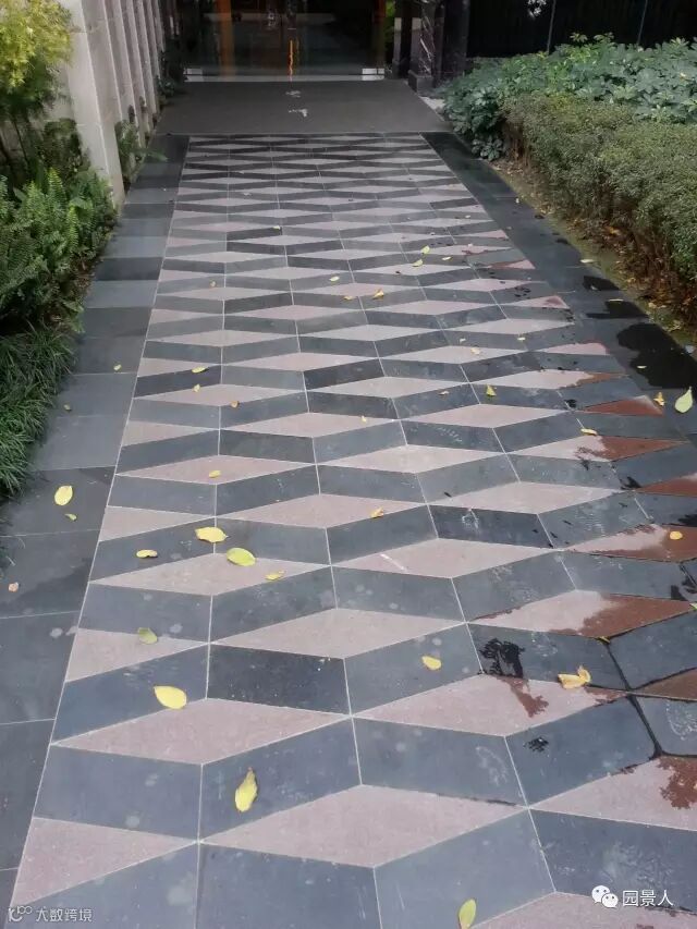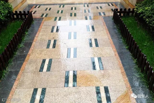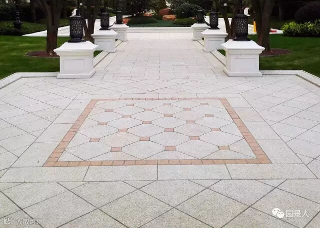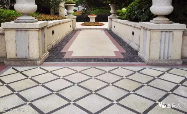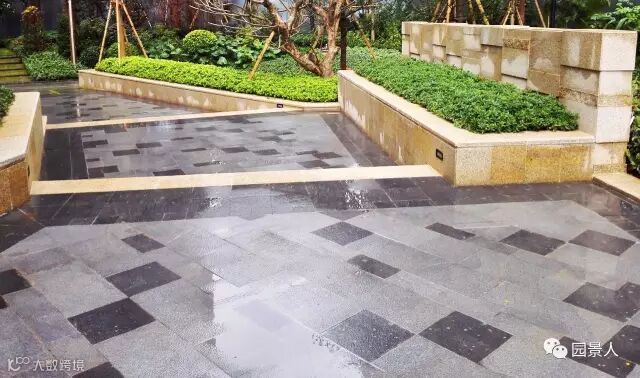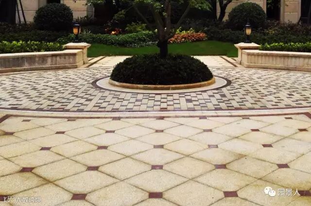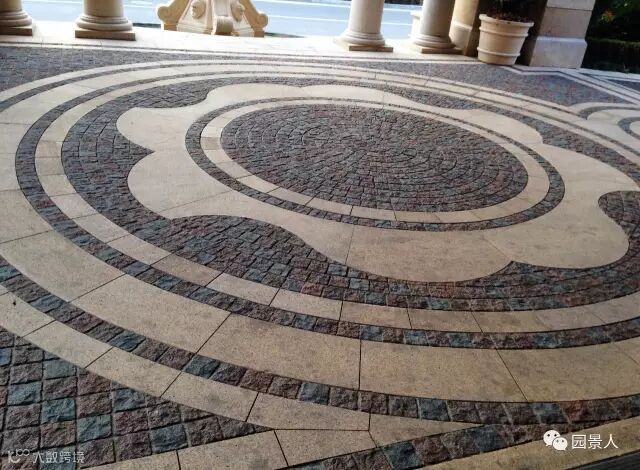 景观设计分为硬景和软景两大类,软景主要靠植物的高矮,季相变化,色彩等来调节整体的效果,而硬景部分则不能像软景那样随着季节的变化而变化,只要施工完成,整体的效果就已定型,因此说硬景的设计要比软景困难,除了需要设计师积累足够的工作经验之外还要求其多多接触已经完工的项目,并拍照进行整理分析,从中得出硬质景观设计的得与失,为以后的设计提供有力支撑。下面我们就以花岗岩铺装为例来看看那些设计精美,工艺精湛的硬质铺装设计实例。