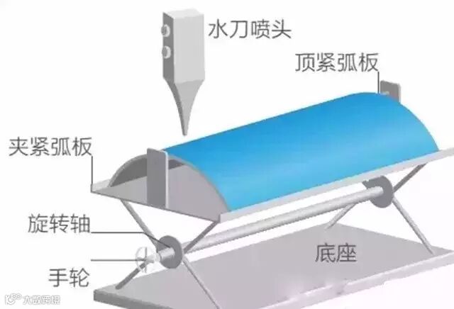 ②依据排板的编号方向将待加工的圆弧板正确放置在水刀机专用的工作台上;