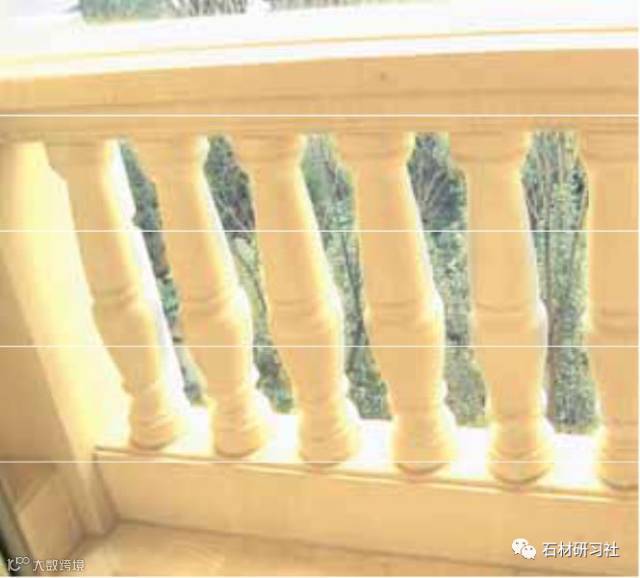 11 段长短不一的圆滑层次车削而成,大小比例拿捏得比较到位,由于采用纯石材雕琢,整体视觉效果极为精致,故大部分阳台位置采用此宝瓶造型。