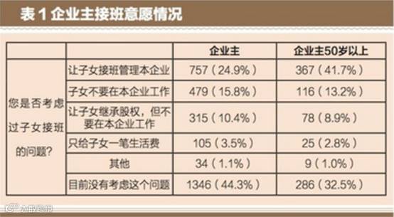 而企业主中年龄在50岁以上的占40%,随着第一代企业家年龄的增长,考虑企业接班换代的企业家越来越多,而且大多希望让其子女接班,且年龄越大,越希望子女接班。