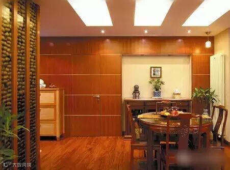 【案例设计理念】:运用了偏中式风格的实木家具及地板,同时选用现代风格的灯饰及壁画,典雅中又透露着文化底蕴。
