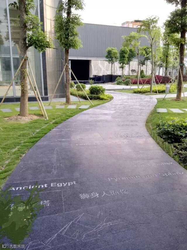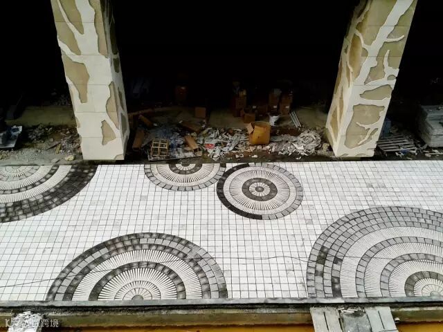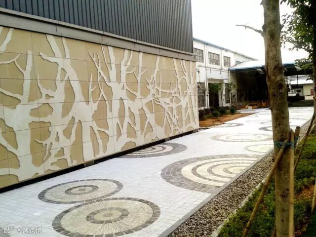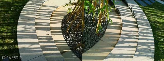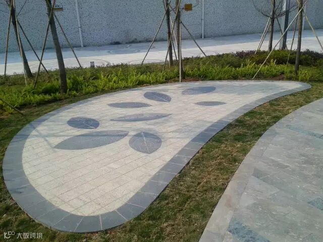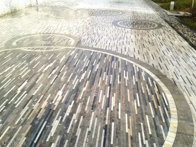 “水纹路面”——“上善若水,水善利万物而不争。”水乃万物生长所需的重要元素之一,水的温润能够柔化石材的冰冷和刚硬,而将一块块小石块拼接成水波纹的形态,这好比一个比喻,石材也有如水般温柔的一面。大大小小的水波纹犹如雨水落入湖面瞬间泛起一层层的涟漪,变出千般美。