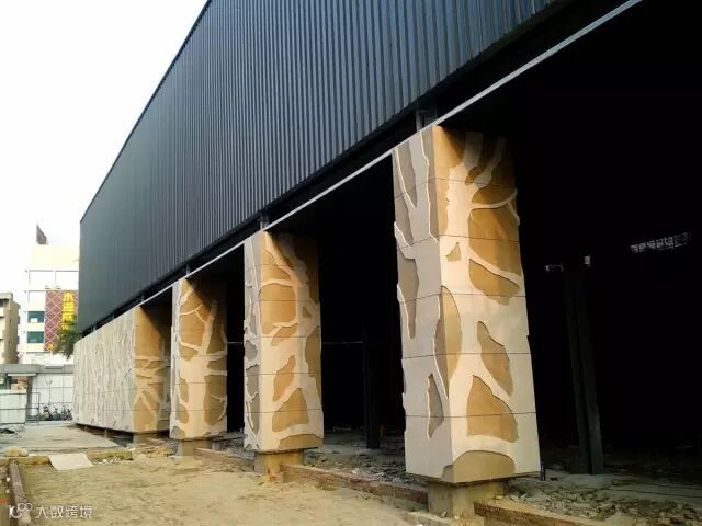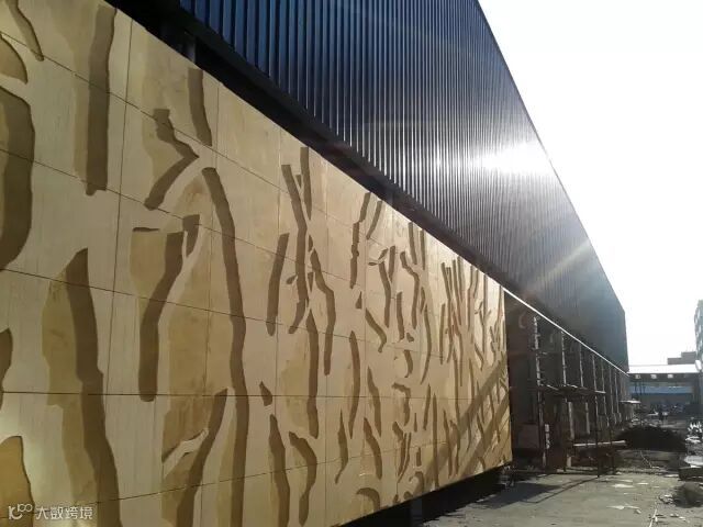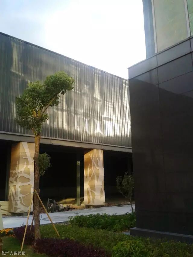 “树影墙裙”——展厅外墙立面面积较大,设计以“树林的剪影”为型,让石材的硬朗顿时融化于疏影斑驳之中。远远观之,丛林静谧,诗意栖居,何等惬意!