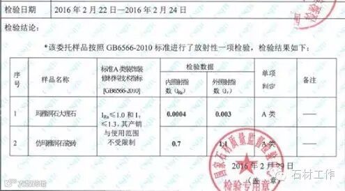 国家石材质量监督检验中心的检测结果