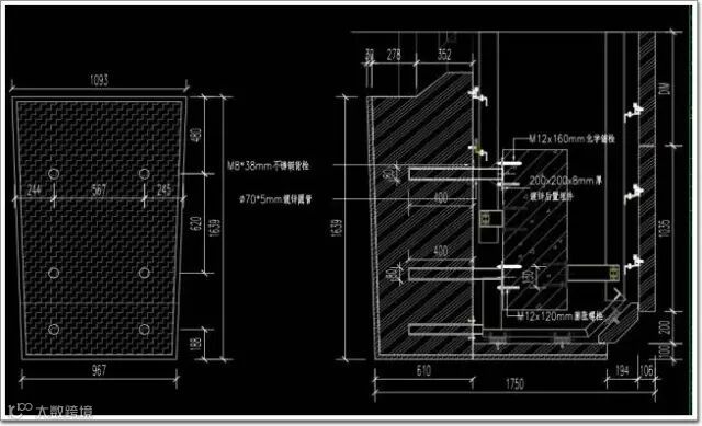 5.对安装工人的技术要求非常高,背栓孔定位受造型影响,难以精确,需严格按照图纸设计的尺寸切割安装。