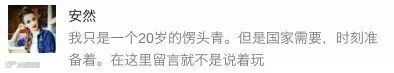我只是一个20岁的愣头青。但是国家需要,时刻准备着。