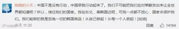 “中国不是没有行动,中国早就行动起来了。信任我们的国家。我在东北,离韩国近吧,可我一点都不担心,国家会保护我们。”