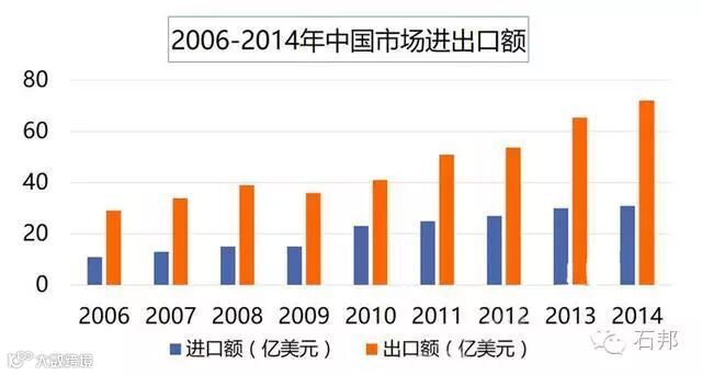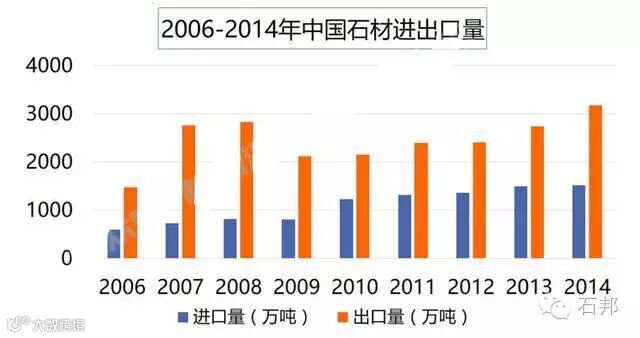 从图中可看出,无论是销售收入还是产量,国内石材的市场需求呈现出上升趋势,特别是近十年,增速大幅度提高,需求较大。