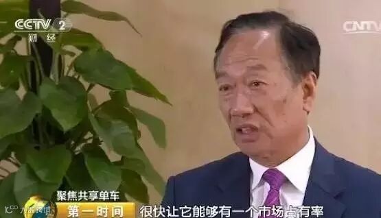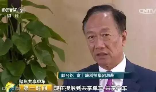 富士康科技集团总裁 郭台铭: 就是现在接触到共享单车、共享汽车,进入到这些很多的网络的,等于说硬件和软件要结合的时代,所以说富士康做到这个就蛮重要的。我们在制造的领域,在设计开发的领域,可以把这家公司很快地让它有一个市场占有率。