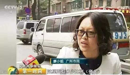广州市民 廖小姐:“现在还是一个无序的状态我觉得政府还有很多事情可以做的,你(企业)有多少台单车,收了多少押金,这里面有多少资金允许你做合理投资, 有一定比例要控制住, 作为风险保障。”