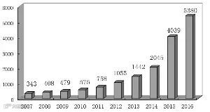 统计显示,近年来我国快递业持续高速发展,已连续6年保持50%左右的增速。2016年业务量突破300亿件大关,与上年相比实现了100亿件的增长,继续稳居世界第一。