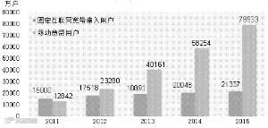 2011-2015年年末固定互联网宽带接入用户和移动宽带用户数