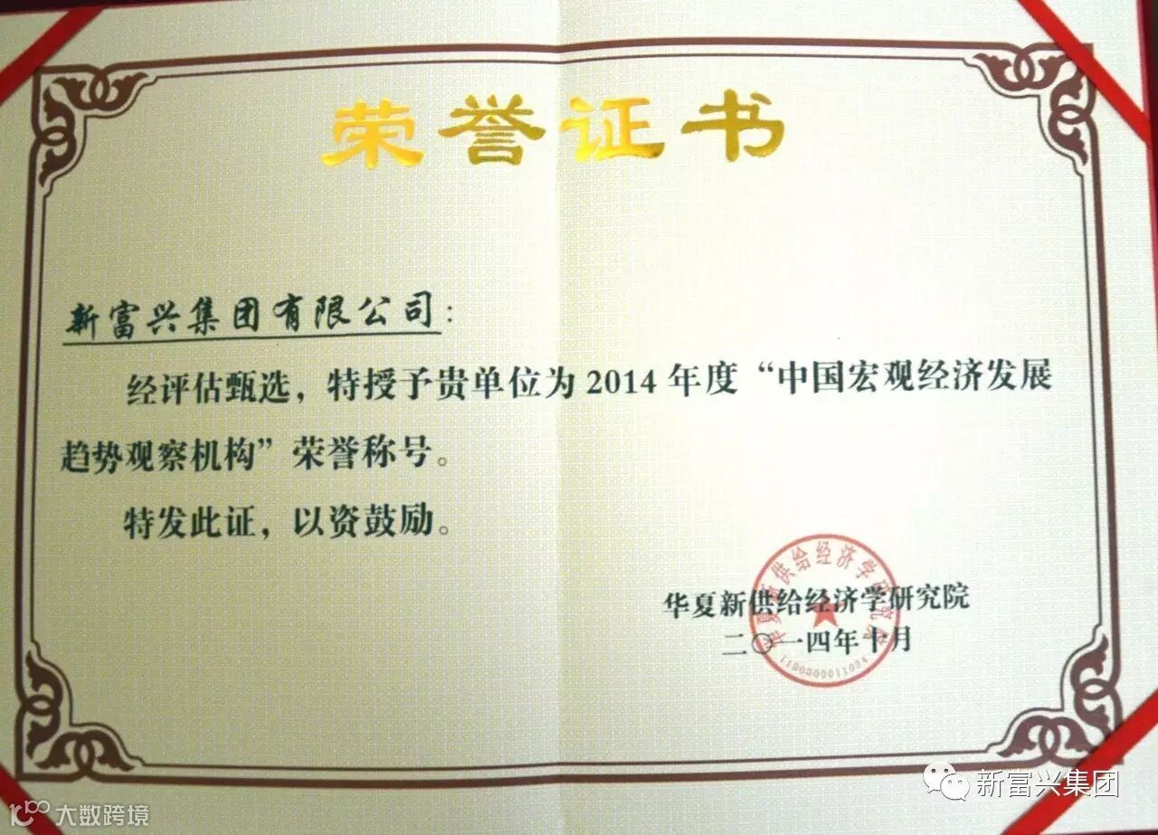 以下仅部分新富兴集团及旗下各大企业荣誉证书(需了解更多请联系负责人参观企业荣誉室)
