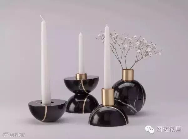 由于大理石本身的材质肌理与金属的几何可塑感