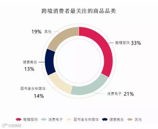 跨境电商消费者关注的前四大商品品类分别为鞋帽服饰(33%)、消费电子(21%)、图书音乐和媒体(14%),以及健康美妆(13%)。通过在线跨境电商购买的商品大部分是重量轻、价格低的物品,其中45%的重量不到500克,16%的价格不到10欧元,而有40%的价格为10欧元至49欧元。
