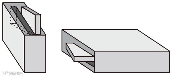 暗榫:榫卯接合方式的一种,暗榫榫头不外露,故板头根据板料的厚薄,均需留出一段45°的夹角做法。