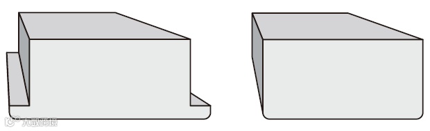 这类收口要求板材的厚度一致,磨边的形状相同。齐平式的收口上下板材拼接处保持平整。