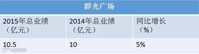 2015年,群光广场总业绩10.5亿元,同比增长10%个百分点。