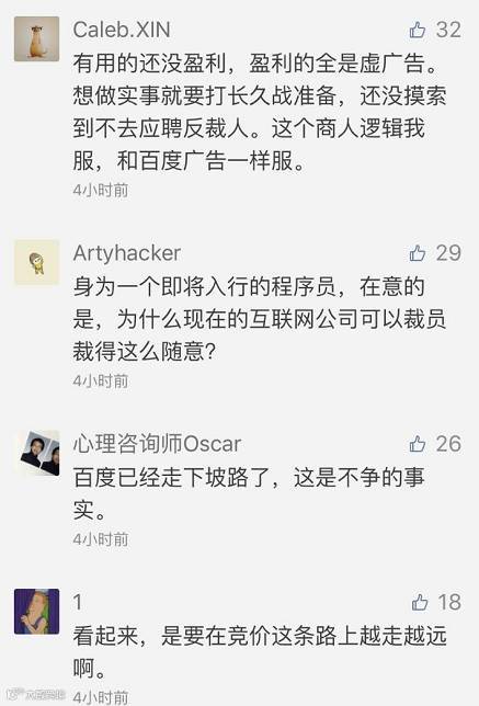而如今,这个事业部却被裁撤了,是破罐子破摔,还是百度把持流量入口的蜜汁自信,置网民的心声于不顾?