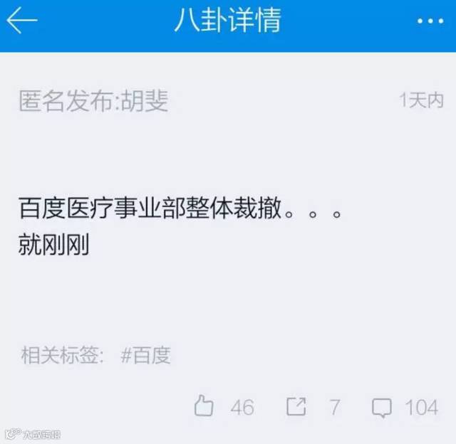 今天朋友圈被这样一则消息炸开了,百度内部整体裁撤了医疗事业部,200来人刚过完年就丢掉了工作。
