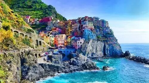 蓝色清澈的地中海水,缤纷美丽的渔村景色
