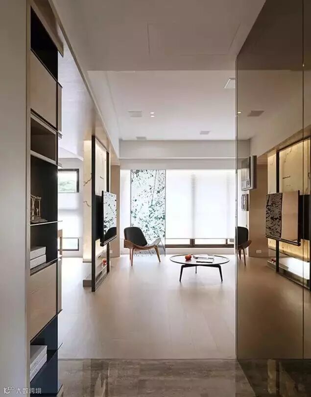 ▲通透的采光加上光亮的大理石,让玄关变得十分的明亮,一个储物柜加上一些简单的装饰品,宽阔的玄关十分的简洁,但小的细节变化,让它富含吸引力。