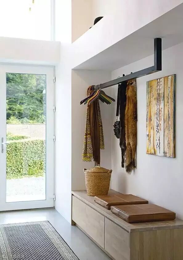 ▲在玄关转角处,规划入鞋柜与衣帽空间,满足全家人的收纳需求。