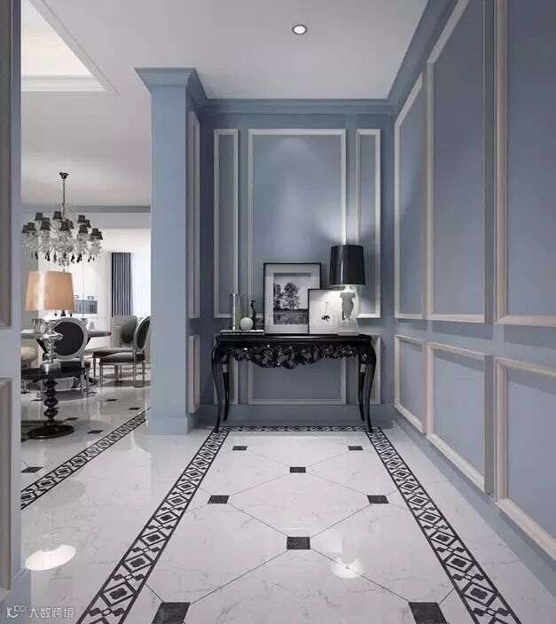 ▲蓝色的背景墙,让玄关拥有自然的氛围,同时家也变得十分的活跃靓丽,黑白蓝在此相遇,古典与现代进行了完美融合。