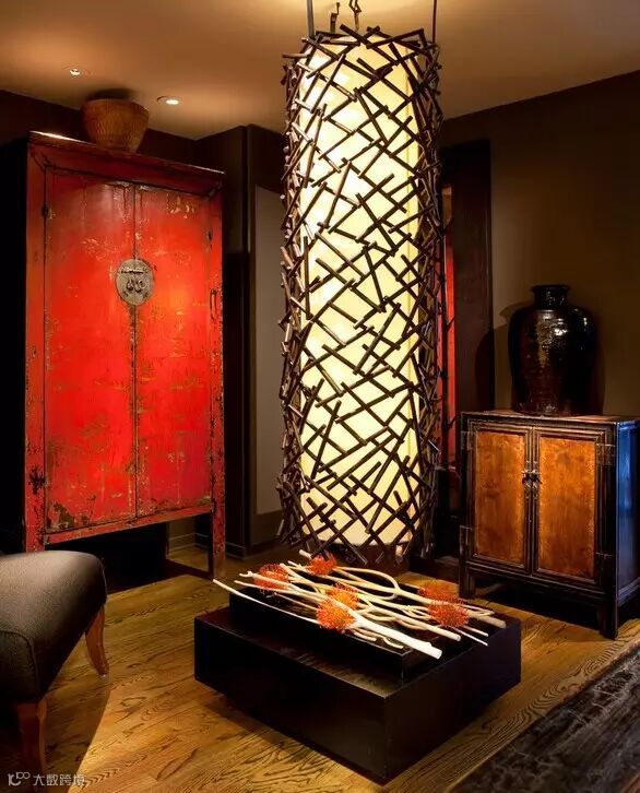 ▲大红色的柜子给空间增添了无限活力,传统中式也能透露出时尚、复古味道。