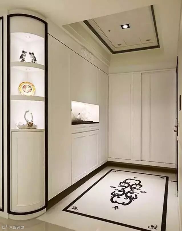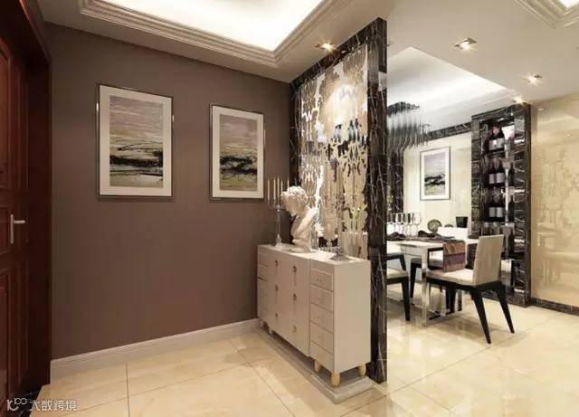 欧式风格的设计讲究的是精雕细琢,融入些许现代的装修风格,年轻的活力点燃沉闷的历史,高贵奢华却又另类时尚,小小门厅也可以散发几分奢华艺术美感。