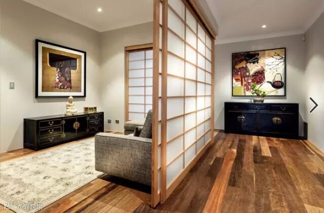 ▲以一道格栅拉门作为内、外空间的划分,让空间可以灵活运用。