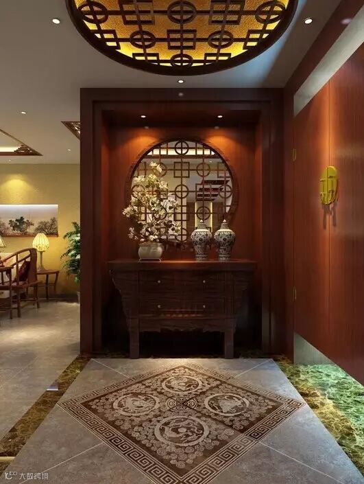 ▲圆形镂空玄关,似隔非隔,古朴雅致。