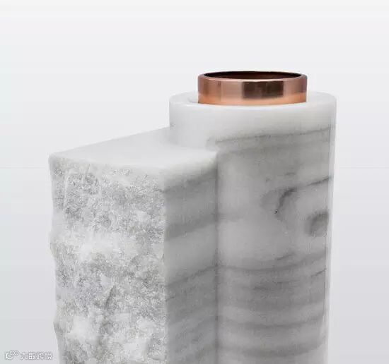 英国Ahsayane Studio设计工作室将不同的材质结合在一起,设计出一款融合了简约和美感的定制花瓶。这款花瓶完全是由纯手工打造而成,中间留有放黄铜器具的空间,而其他整体则是采用大理石材质,正好和黄铜形成了反差对比,让花瓶看上就像是长在墙上一样。