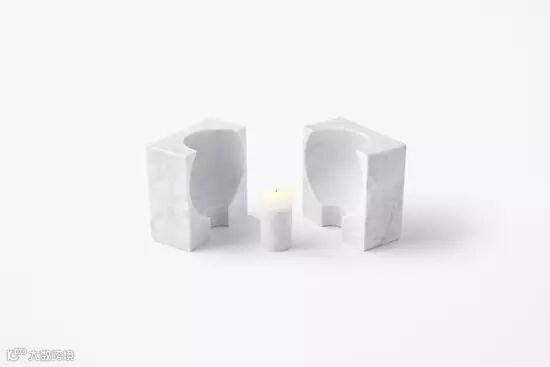 Nendo设计的这款烛台正方体的大理石中间被「挖」了一个球形的洞,这其实是一款烛台设计。将其左右分开,蜡烛放置其中,当蜡烛大致位于球体中心位置时,你会看到光透过大理石均匀地发散,温暖柔和。