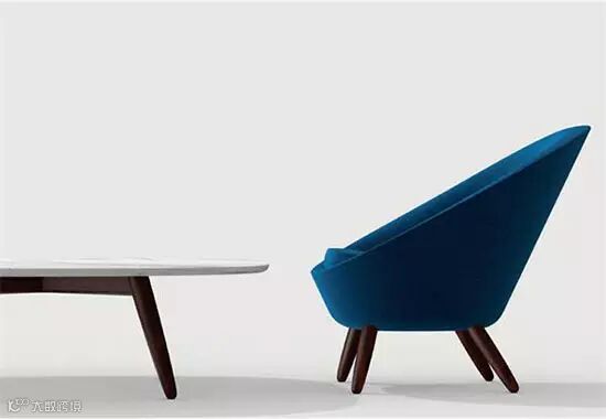 这是由日本设计师Naoto Fukasawa 为 Draide联合设计的一组家具产品。ten代表蓝色的天空,ci 则代表白色的大地。扶手椅 ten 的靠背略微倾斜,有织布和皮质两种材质;而 ci 茶几则是利用大理石打造成桌面纹理就像大地一样。