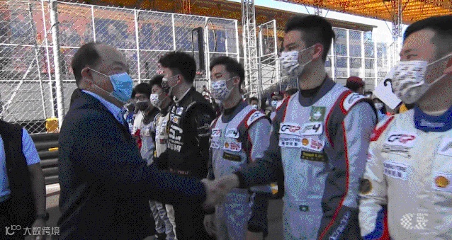 澳门特区行政长官贺一诚与全体赛会成员及F4车手逐一握手