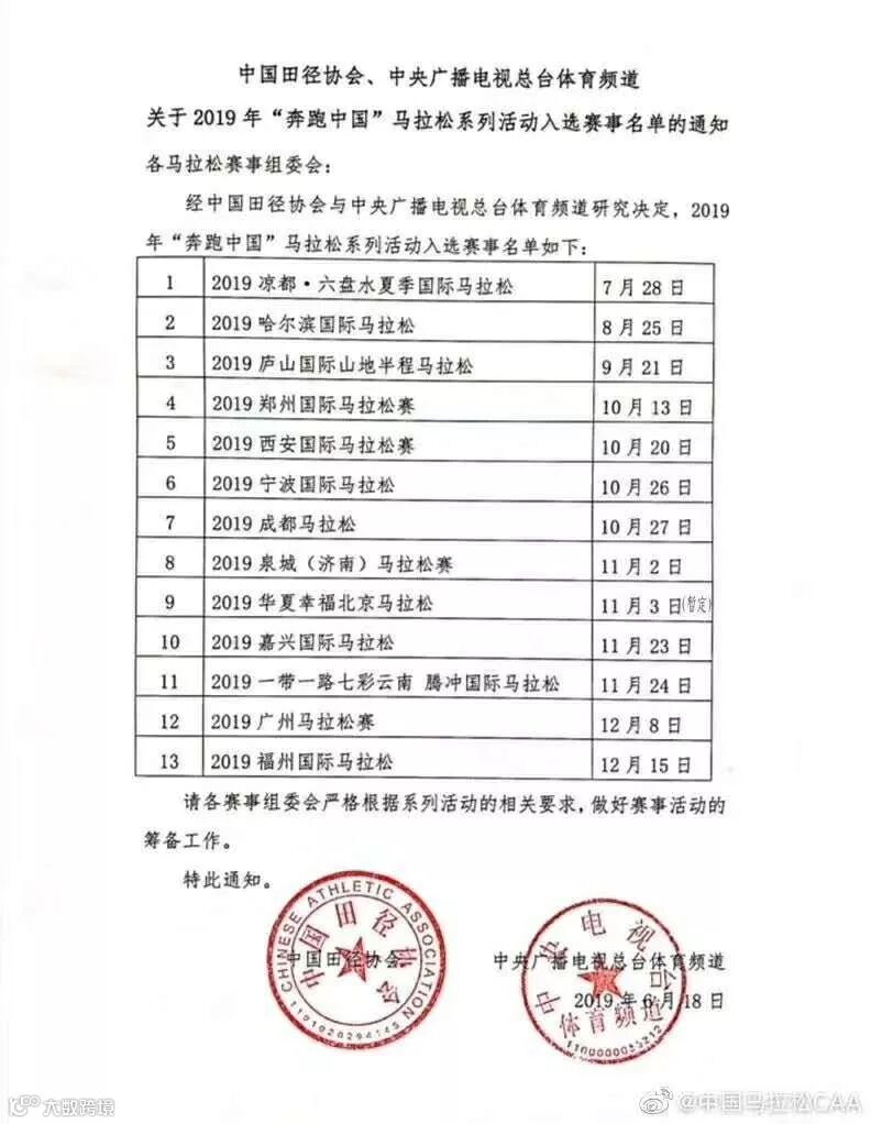 2019“奔跑中国”赛事名单公布 铭泰体育两项参与赛事入围