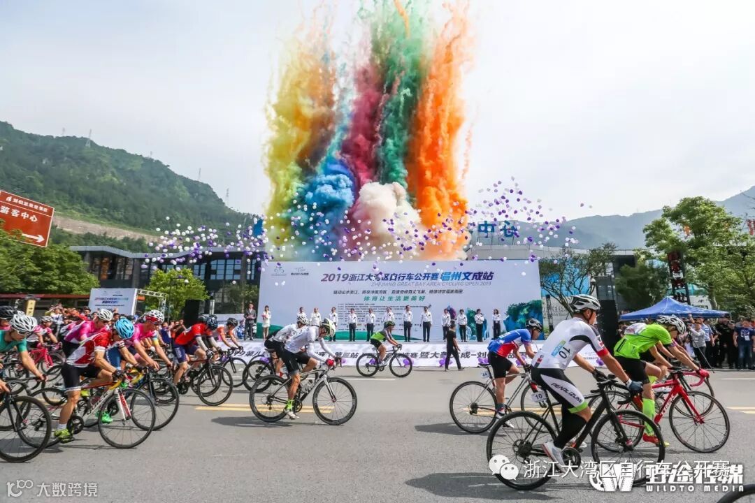 6月16日上午,由浙江省体育局、温州市体育局、文成县人民政府主办,浙江省体育竞赛中心、文成县文化和广电旅游体育局、温州市百丈漈-飞云湖风景旅游经济发展中心、文成县体育事业发展中心承办,温州市自行车运动协会、浙江青鸟捷出体育文化传播有限公司执行,北京铭泰体育产业投资有限公司运营、杭州汉尚广告有限公司负责活动策划的2019浙江大湾区自行车公开赛温州文成站在文成县旅游集散中心正式鸣枪出发。