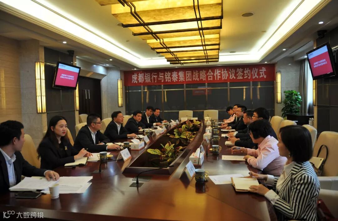 2019年10月29日,铭泰投资发展集团有限公司(以下简称铭泰)和成都银行股份有限公司(以下简称成都银行)签署协议,结成战略合作伙伴关系。铭泰投资发展集团董事长王兴贵、铭泰投资发展集团总裁翁晓冬以及成都银行党委书记、董事长、行长王晖等领导出席了签约仪式。铭泰投资发展集团首席财务官陈圣杰与成都银行首席客户经理龚民代表双方公司签署协议。