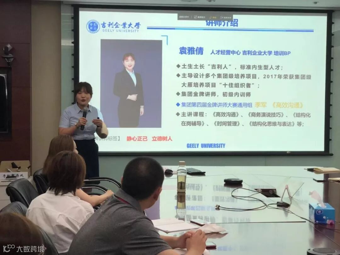 此次《时间管理》培训特邀吉利企业大学的袁雅倩担任讲师,通过此次培训,让学员掌握时间的重要性,理清时间管理的思路,学习时间管理的技能和技巧,大大提高工作效率。此次培训共有12个公司,40多人参加。