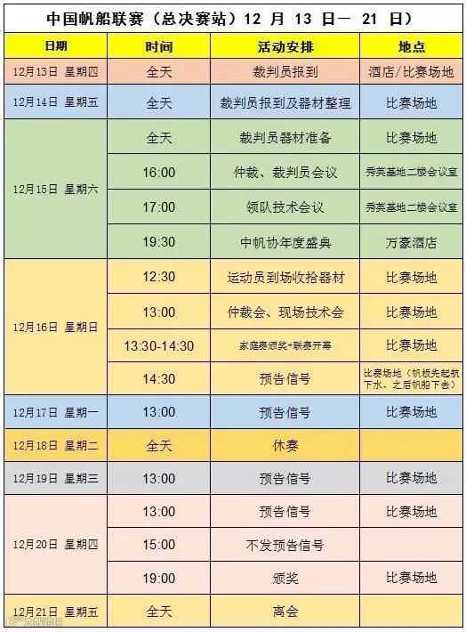 早在2018年10月份,铭泰体育产业投资有限公司便于中国帆船帆板运动协会合作发起中国帆船联赛,为中国帆船运动创造出更大的发展空间。中国帆船联赛山东滨海站已经结束,借助这次中国帆船年度颁奖典礼,海南海口站于12月16日在海口站扬帆起航,比赛项目设男女帆板、女子激光雷迪尔级、男470级以及女子470级别五个级别。