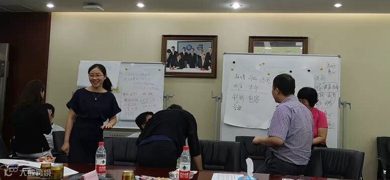 2018年7月18日下午,一场别开生面的工作坊在铭泰集团大会议室开启。来自吉利控股集团人力资源部的俞灵敏老师、汤丽君老师为我们做了吉利控股的文化建设专题培训及铭泰集团文化体系的共创。铭泰集团高管、各单位一把手和各职能中心负责人积极参与、小组讨论,不断为铭泰集团的文化共创大开脑洞、碰撞火花。