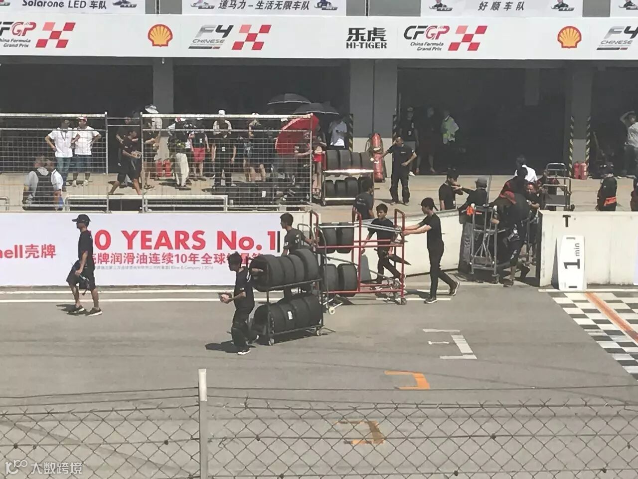 赛车手和工作人员在进行最后的准备工作,