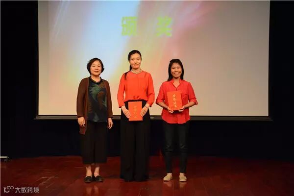 3 北京市教学名师李敏老师为三等奖获得者张梦、张洁函、徐婧老师颁奖